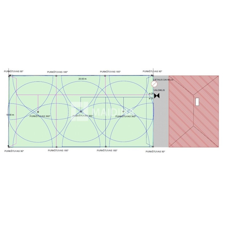 2 arų automatinė vejos laistymo sistema