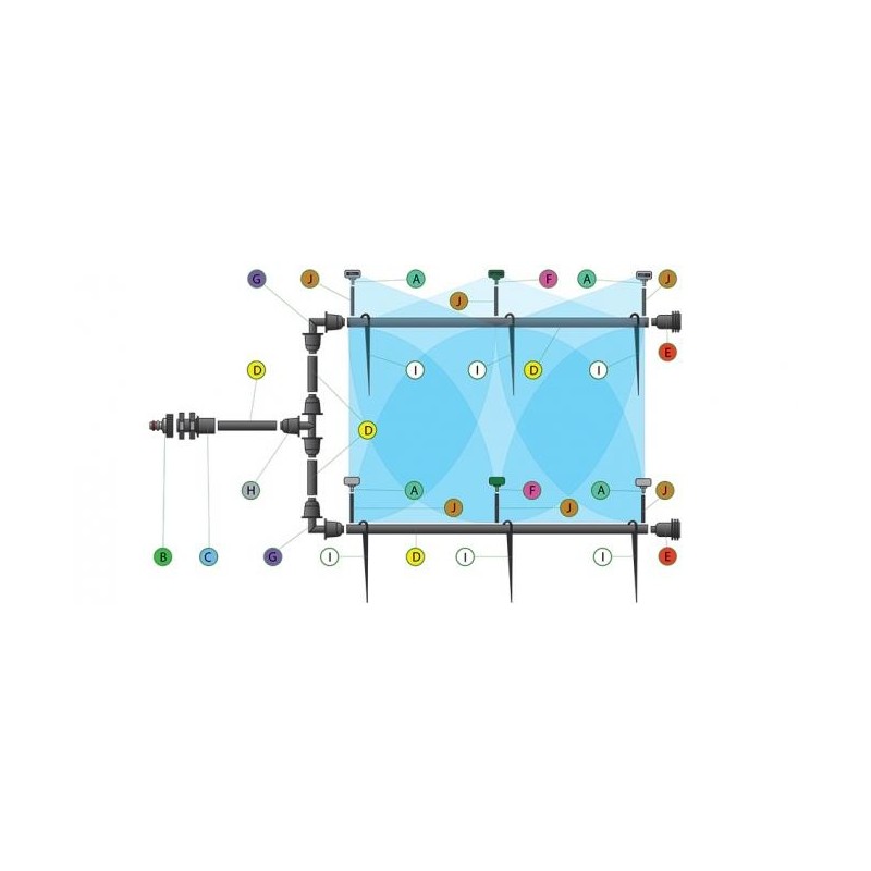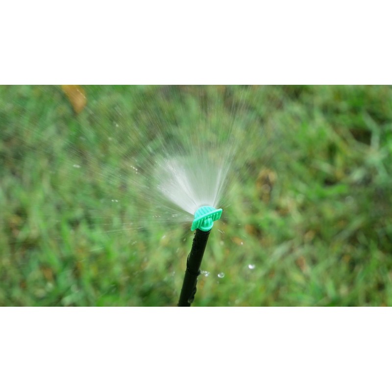 Ši laistymo sistema tinkama laistymui šiltnamyje, ypač tinka laistyti daigus. Tai aukščiausios kokybės laistymo sistema pasižyminti itin tolygiu purškimu. Darbinis slėgis nuo 1 iki 4 atmosferų. Vieno purkštuvo laistymo spindulys iki 3 metrų, purškimo kampas: 4 purkštukai x 90° ir 2 purkštukai x 180° ! Jeigu vandenyje yra nešvarumų, būtina naudoti filtrą