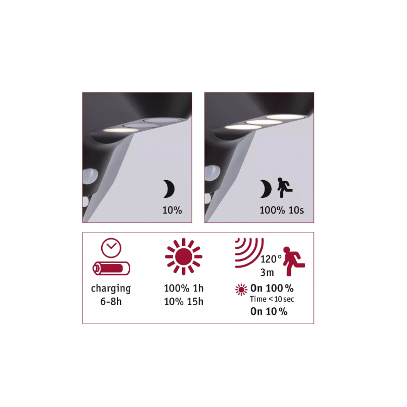 Šis subtilaus dizaino šviestuvas Soley su saulės baterija suteiks jaukų ir šiltą apšvietimą Jūsų namui. Keičiamą ličio jonų bateriją dienos metu savaime įkrauna saulė. Taip pat šviestuvą galima naudoti kartu su namo numeriu įsigijus jį papildomai (parodyta nuotraukoje).