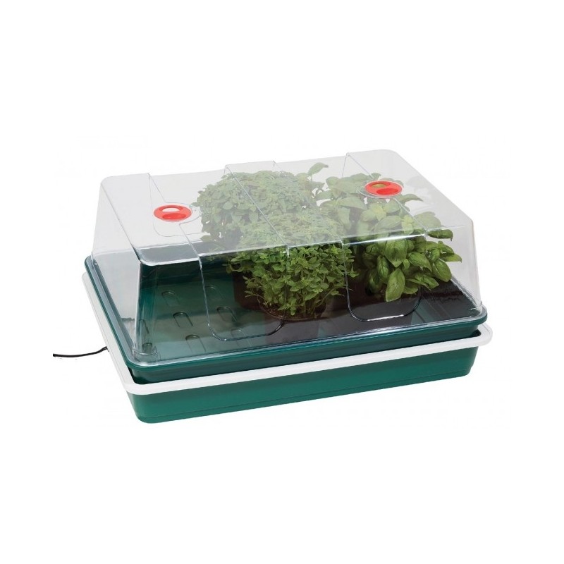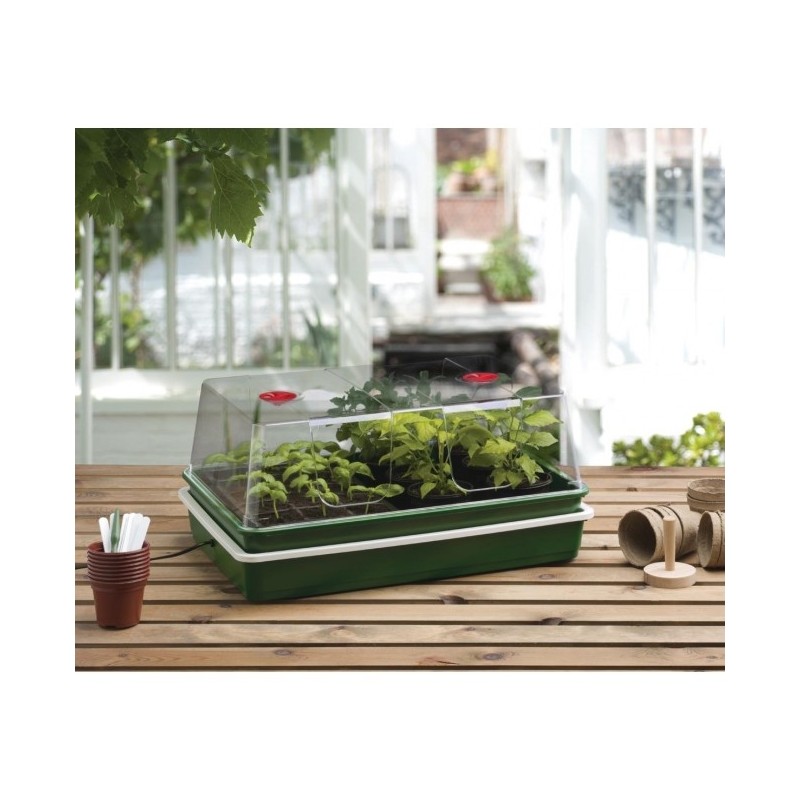 Didelė elektrinė šiltlysvė "XL Dome" turi 24 W šildomą pagrindą. Idealiai tinka sodininkui, norinčiam daiginti sėklas ir auginti augalus. Vientisas auginimo padėklas ir krištolo skaidrumo, aukštas, ventiliuojamas dangtis turi šildomą pagrindą, kuris sukuria optimalias augimo sąlygas. „XL Dome“ yra idealus prietaisas daržovėms, gėlėms ar prieskoninėms žolelėms auginti. Nesvarbu, ar daiginate sėklas, ar jau įsišaknijusius augalus, šis paprastas ne termostatinis valdymo blokas suteikia puikias, pigias priemones sėkmingam augalų auginimui. Ekonomiškas, 24 W šildymo padėklas sunaudoja minimaliai energijos. Elektrinis padėklas suteikia šilumą, kuri padeda augalams greičiau sudygti ir palaiko jaunų augalų vystymąsi. Krištolo skaidrumo, ypač aukštas viršutinis dangtis su reguliuojama ventiliacija, leidžia kontroliuoti idealias drėgmės sąlygas.