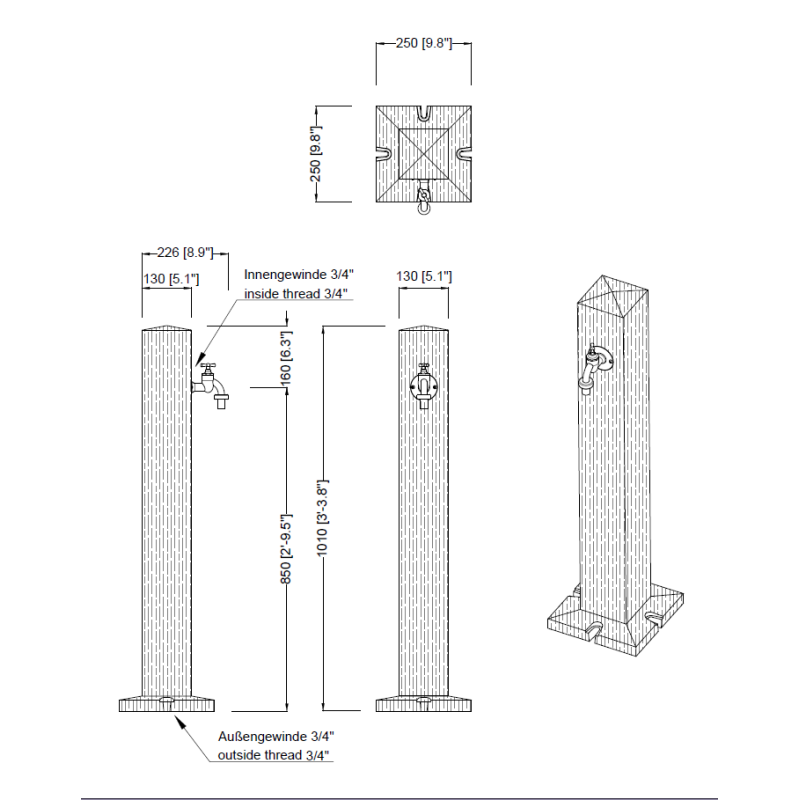 Elegantiška vandens kolonėlė taps tikra Jūsų kiemo ar sodo puošmena. Medžio imitacijos vandens kolonėlė pagaminta iš aukštos kokybės plastiko, kuris puikiai prisitaiko prie įvairių oro sąlygų. Šias kolonėles gamina GRAF - tai daugiau nei 20 metų patirties turinti Vokietijos įmonė, pasižyminti aukšta kokybe, gerai apgalvotais dizaino sprendimais bei tvaria produkcija.